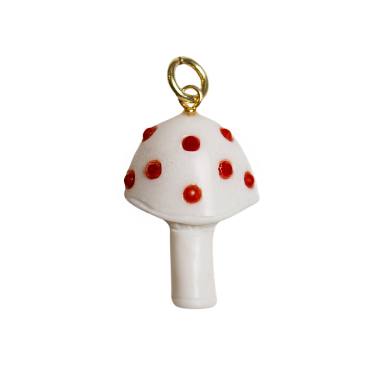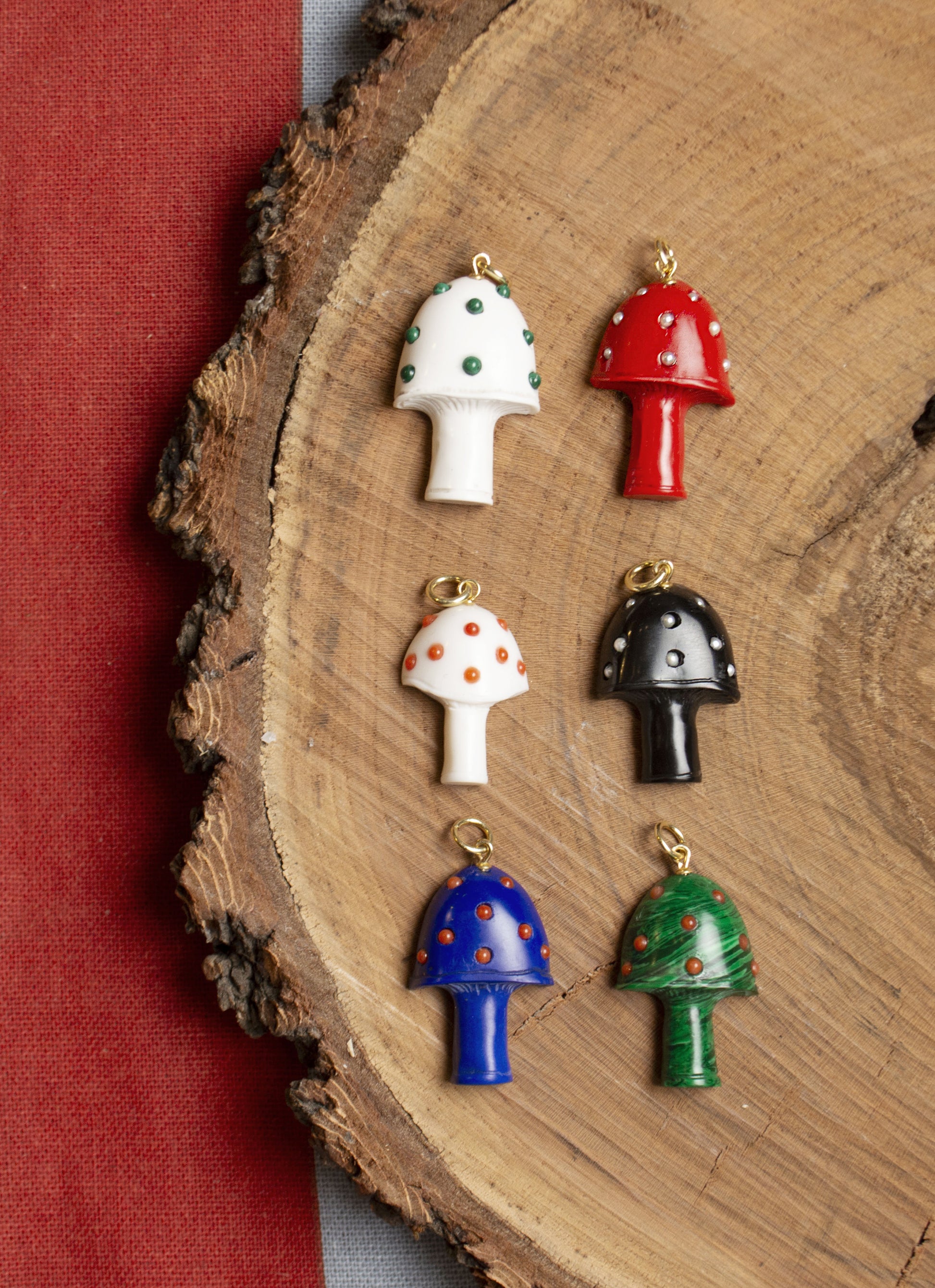 Ciondolo fungo con inserti in corallo naturale, malachite e perle