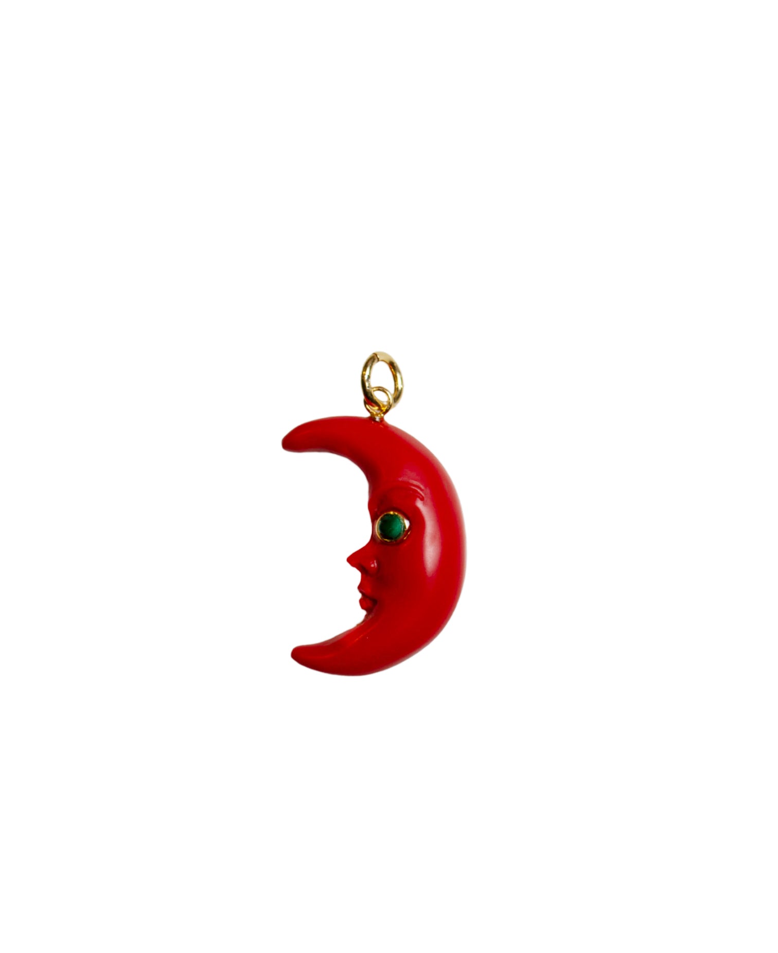 Ciondolo luna con inserti in corallo naturale, malachite e perle