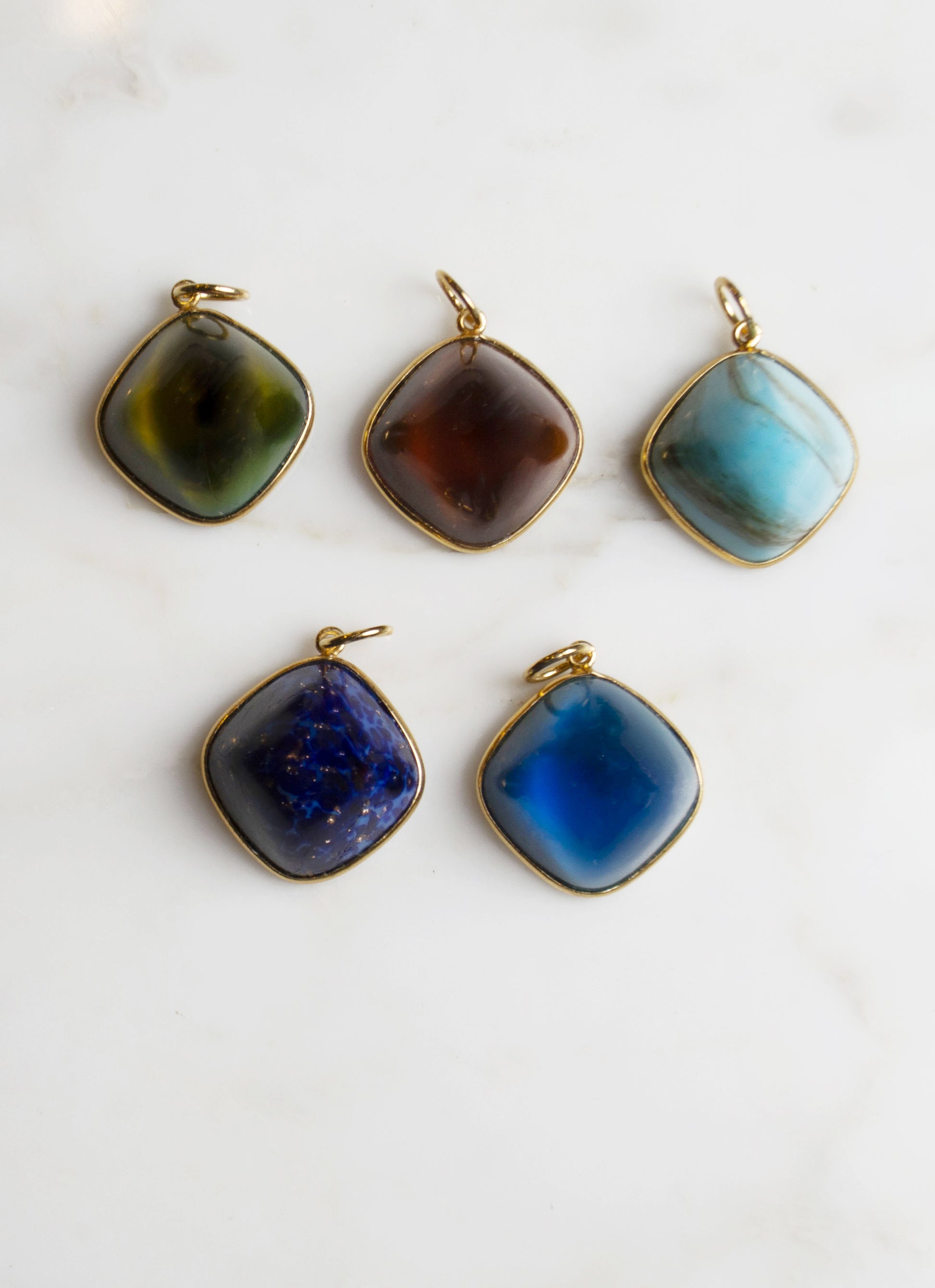 Doppiette in vetro vintage degli anni Cinquanta, realizzate in Germania nel dopoguerra da un artigiano che sperimentava tecniche innovative per replicare i colori e le texture delle pietre naturali