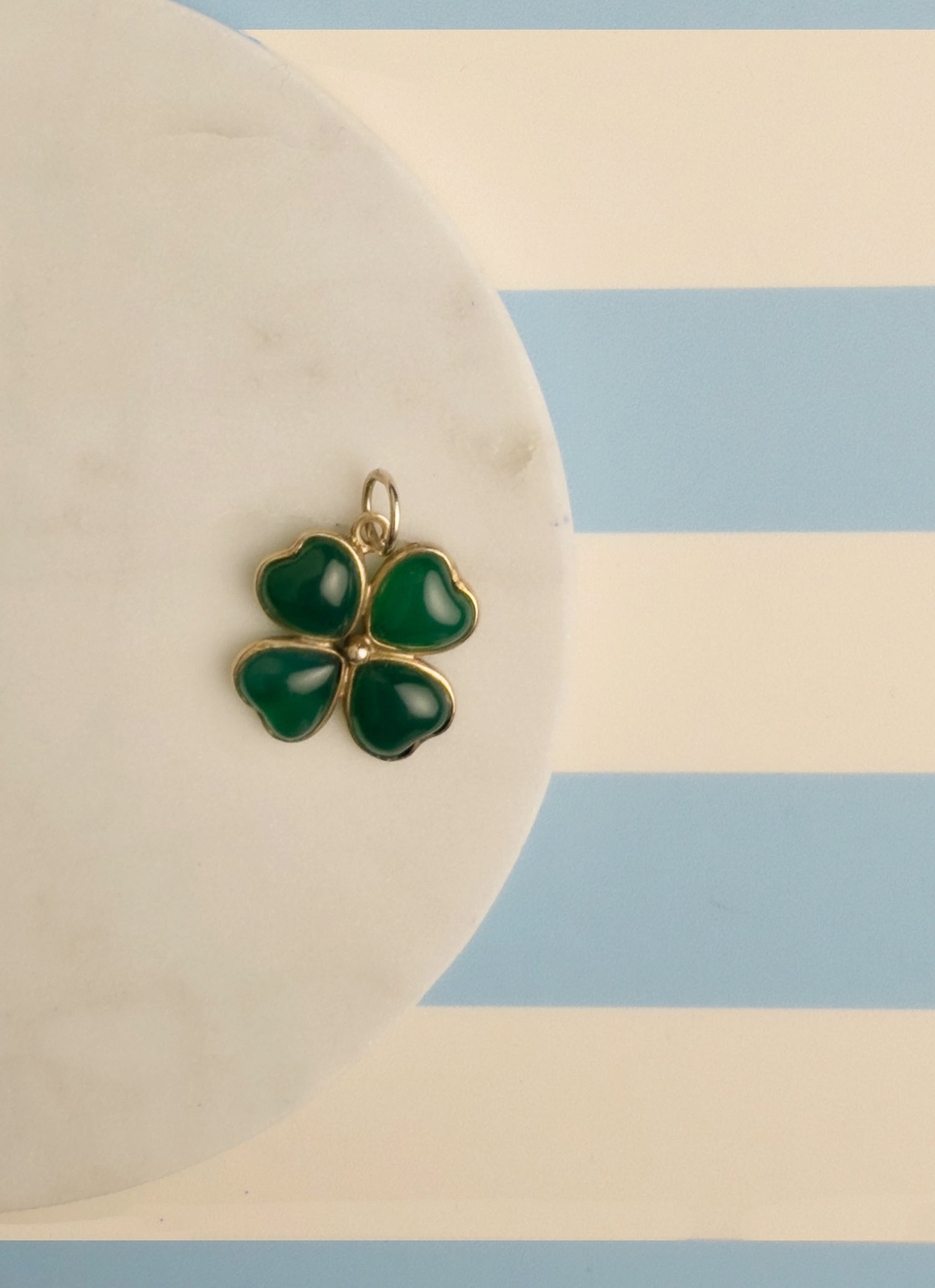 Ciondolo quadrifoglio composto da quattro cuori in agata verde che formano le foglie.