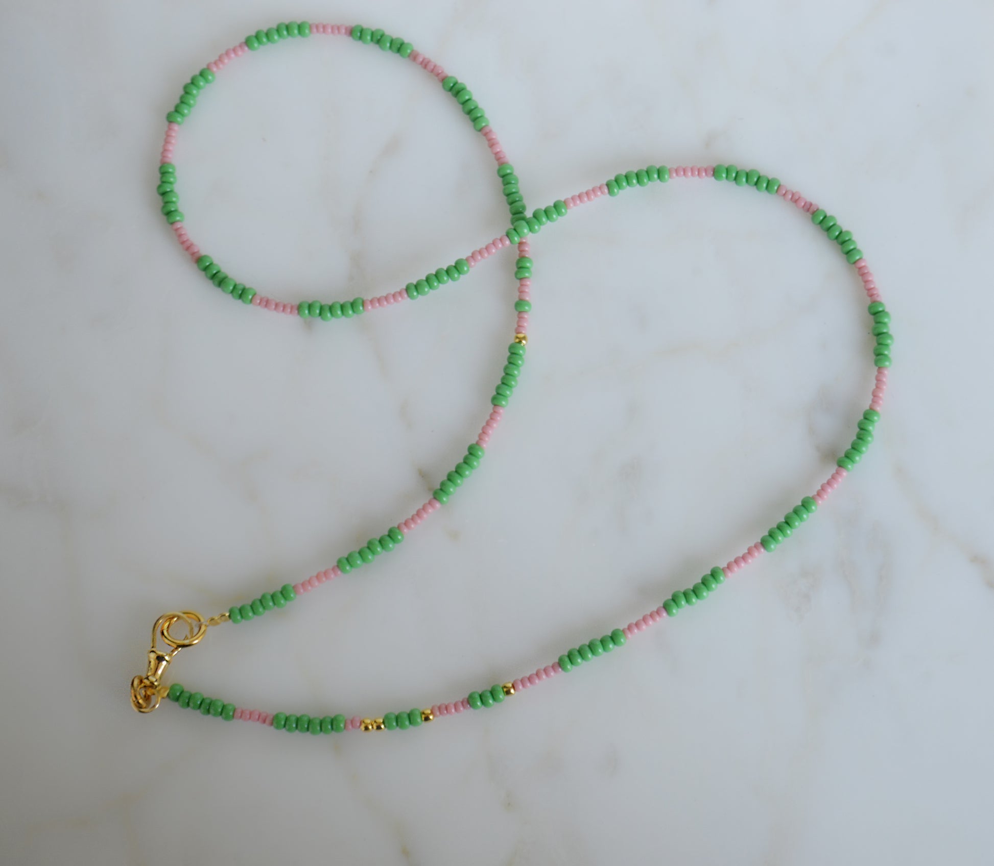 Perline di vetro verdi e rosa - 55cm