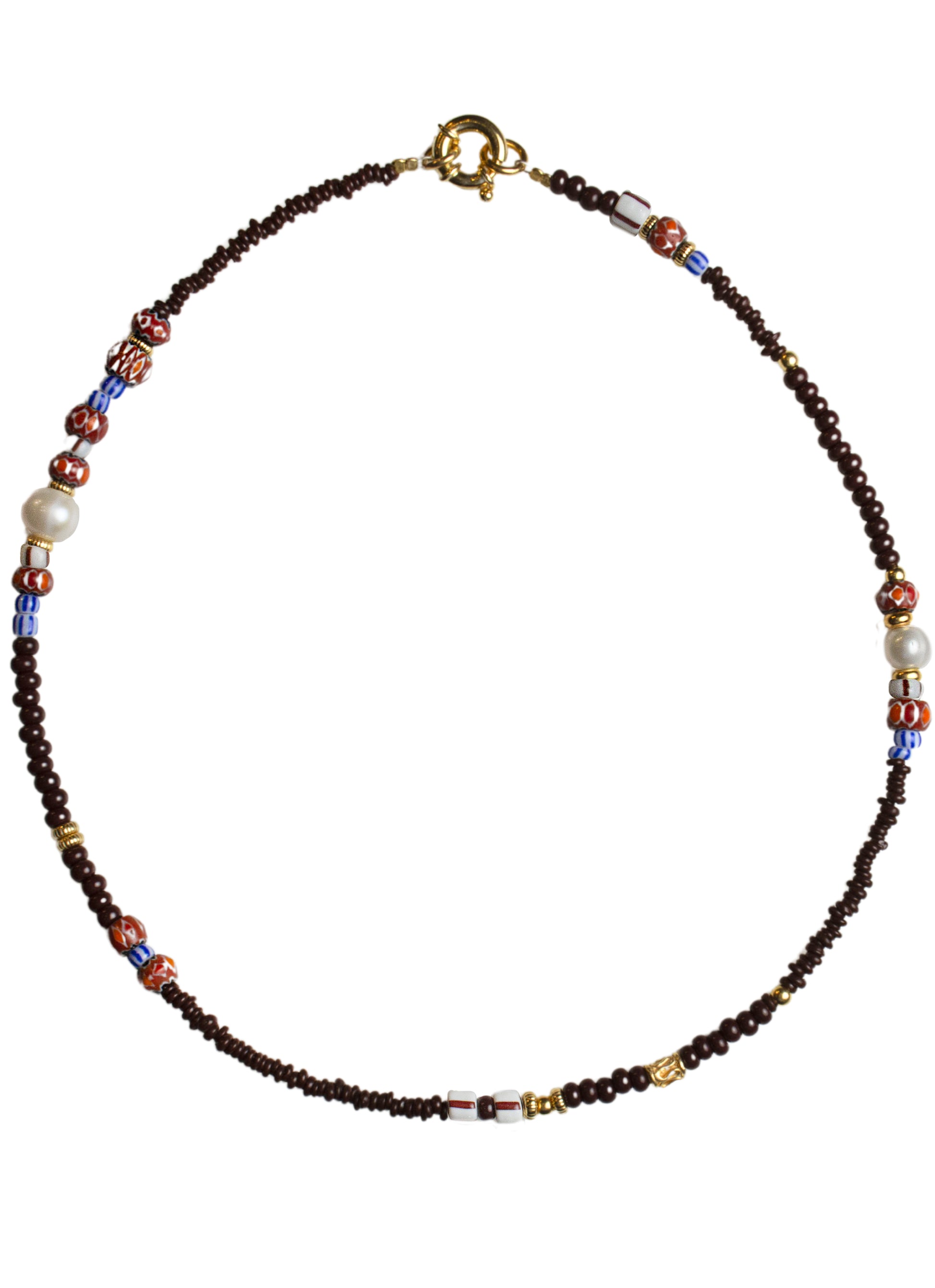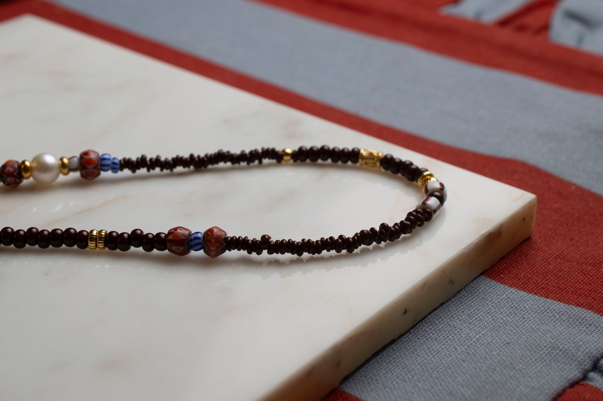 Collana con perline in vetro veneziano murrine anni 40 e perle di fiume