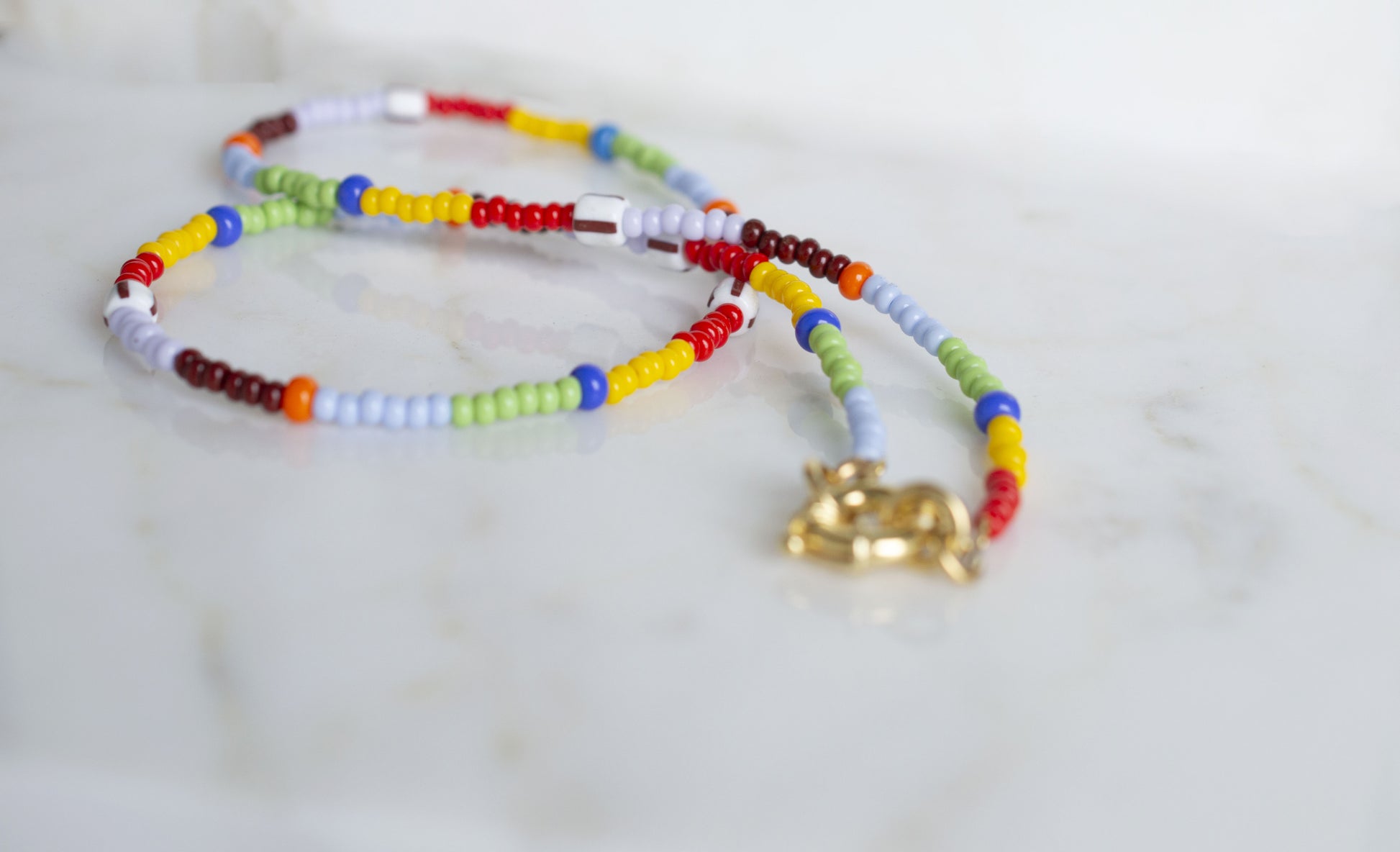 La caratteristica di questa collana è la chiusura a gancio (in argento dorato 18 carati), progettata per inserire uno o più ciondoli.