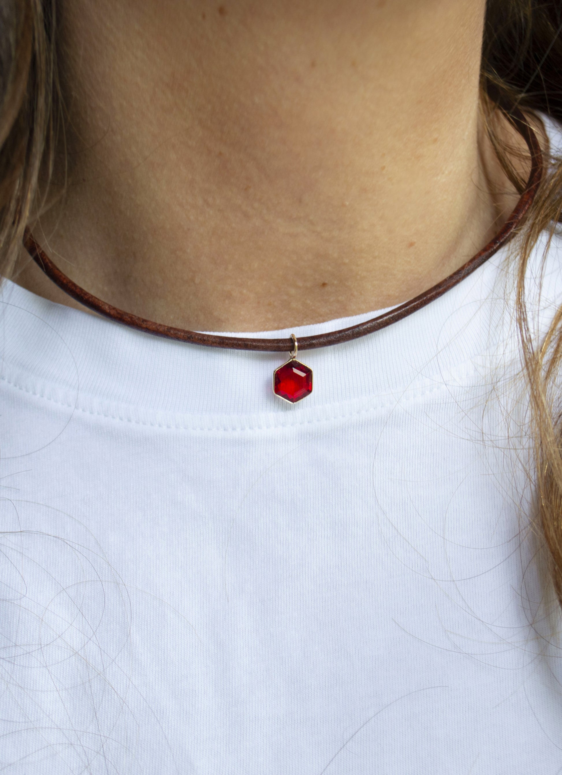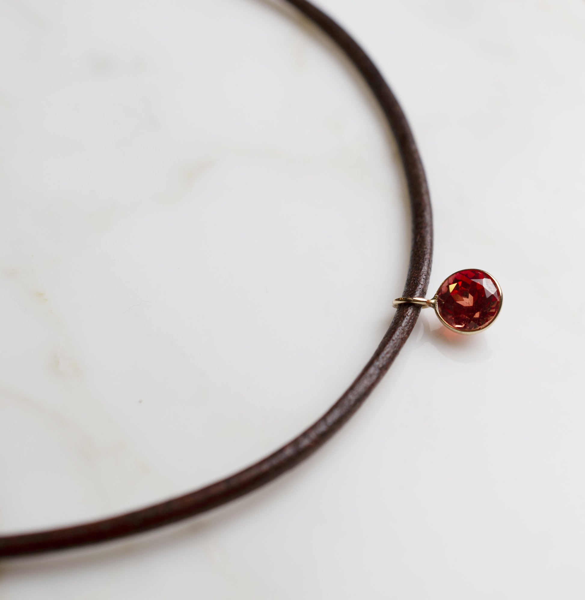 Collana in pelle cerata marrone con zaffiro di laboratorio