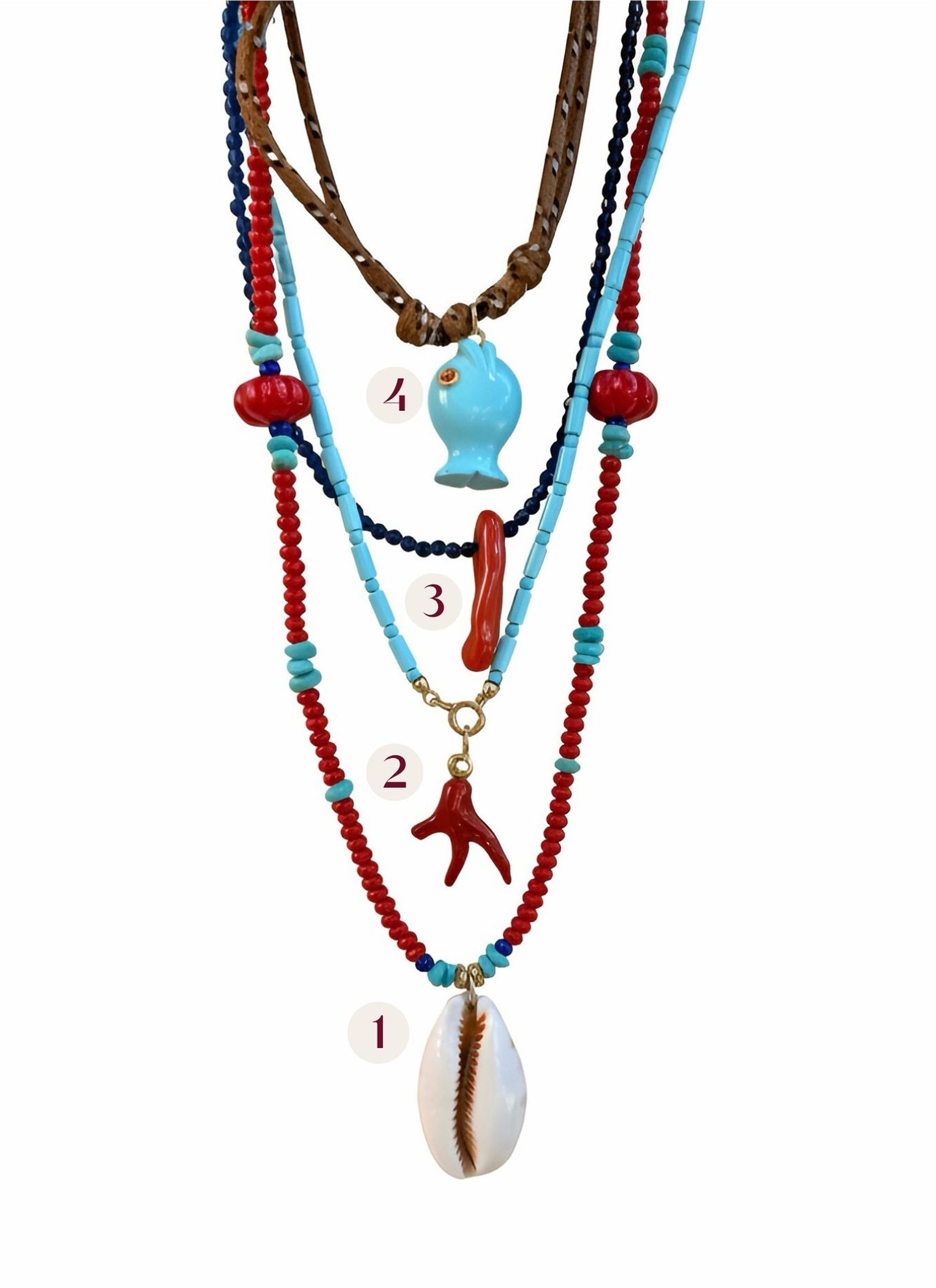 - Collana con perline in vetro veneziano e conchiglia naturale