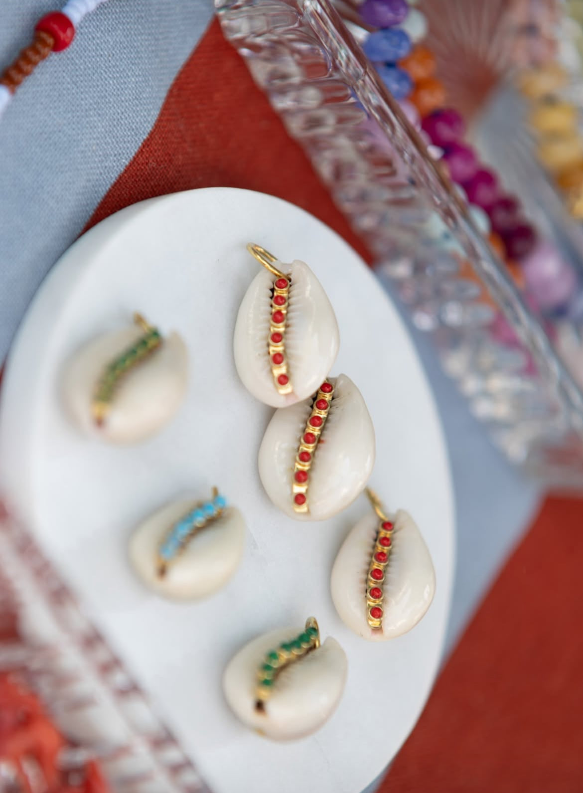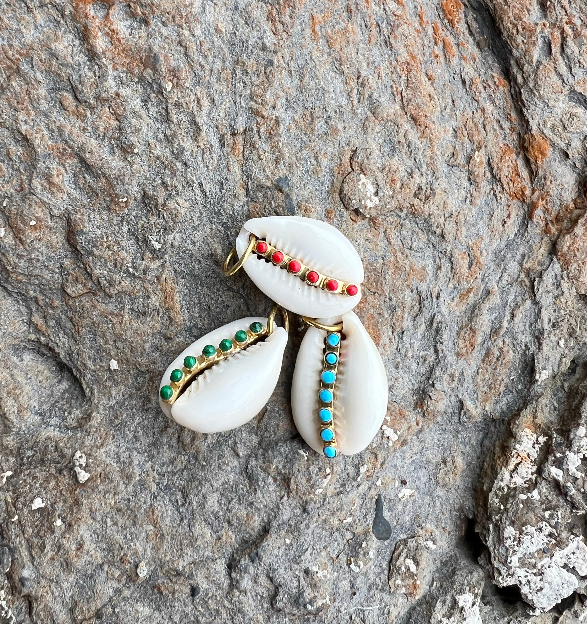 Conchiglia naturale con malachite in argento 925 dorato 18 carati