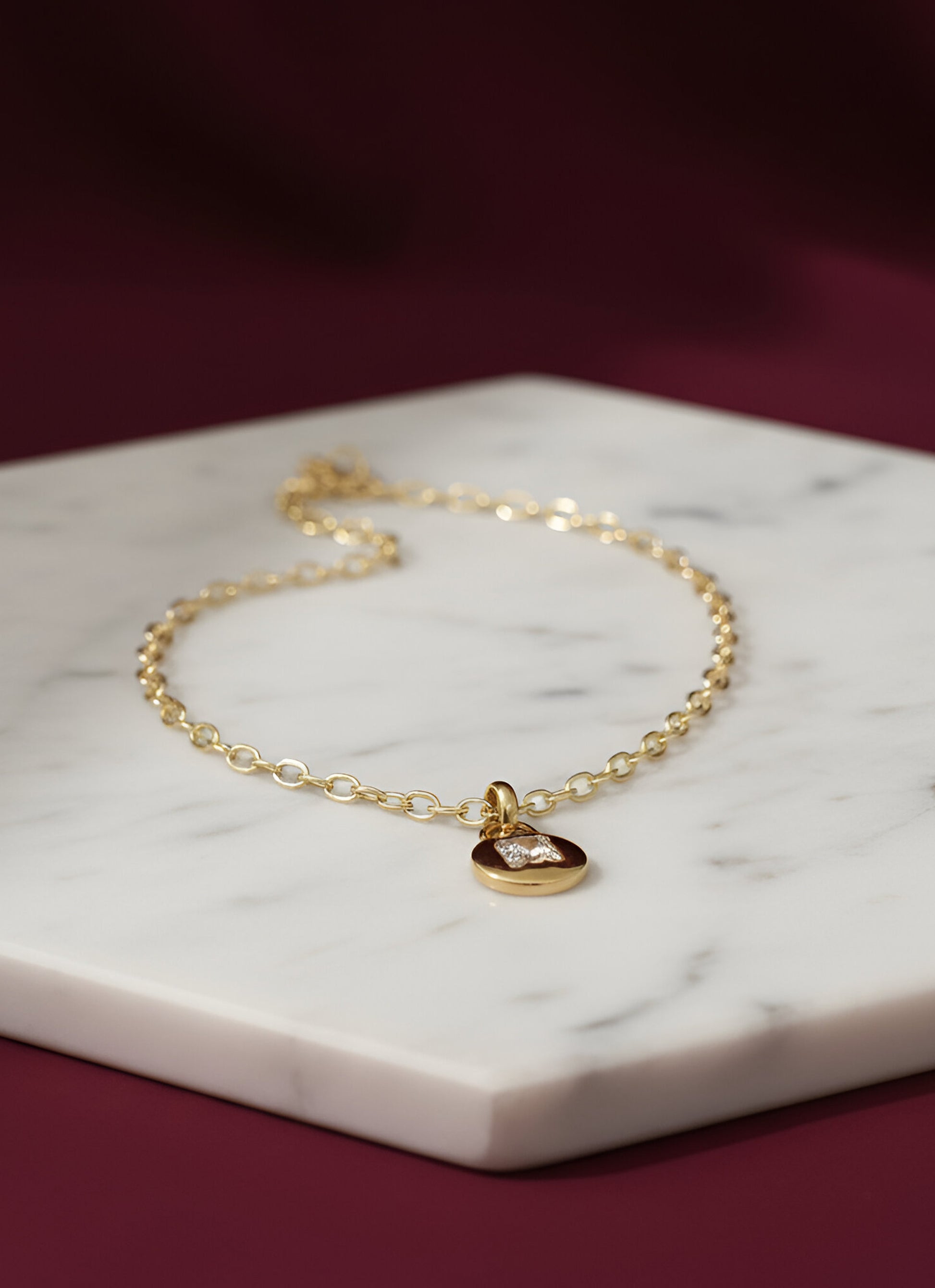 Catena realizzata in argento 925 con doratura in 18 carati, lunghezza della catena 42 cm regolabile fino a 45 cm
