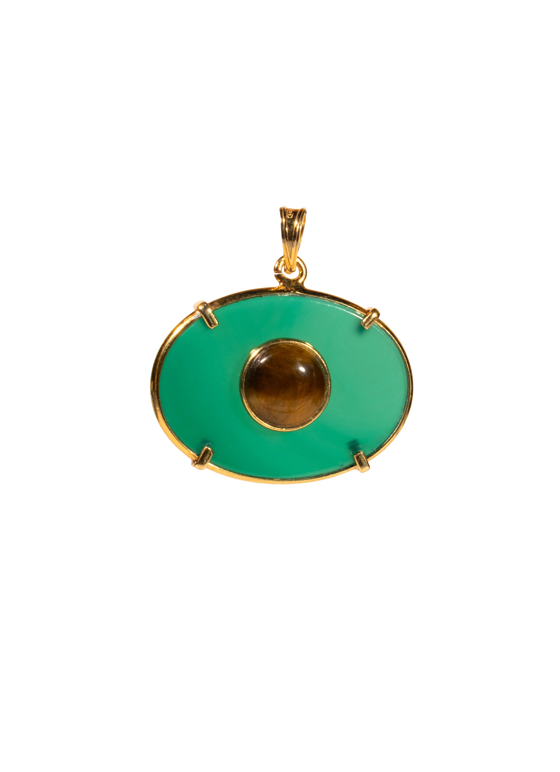 Ciondolo in agata verde con al centro cabochon in occhio di tigre.