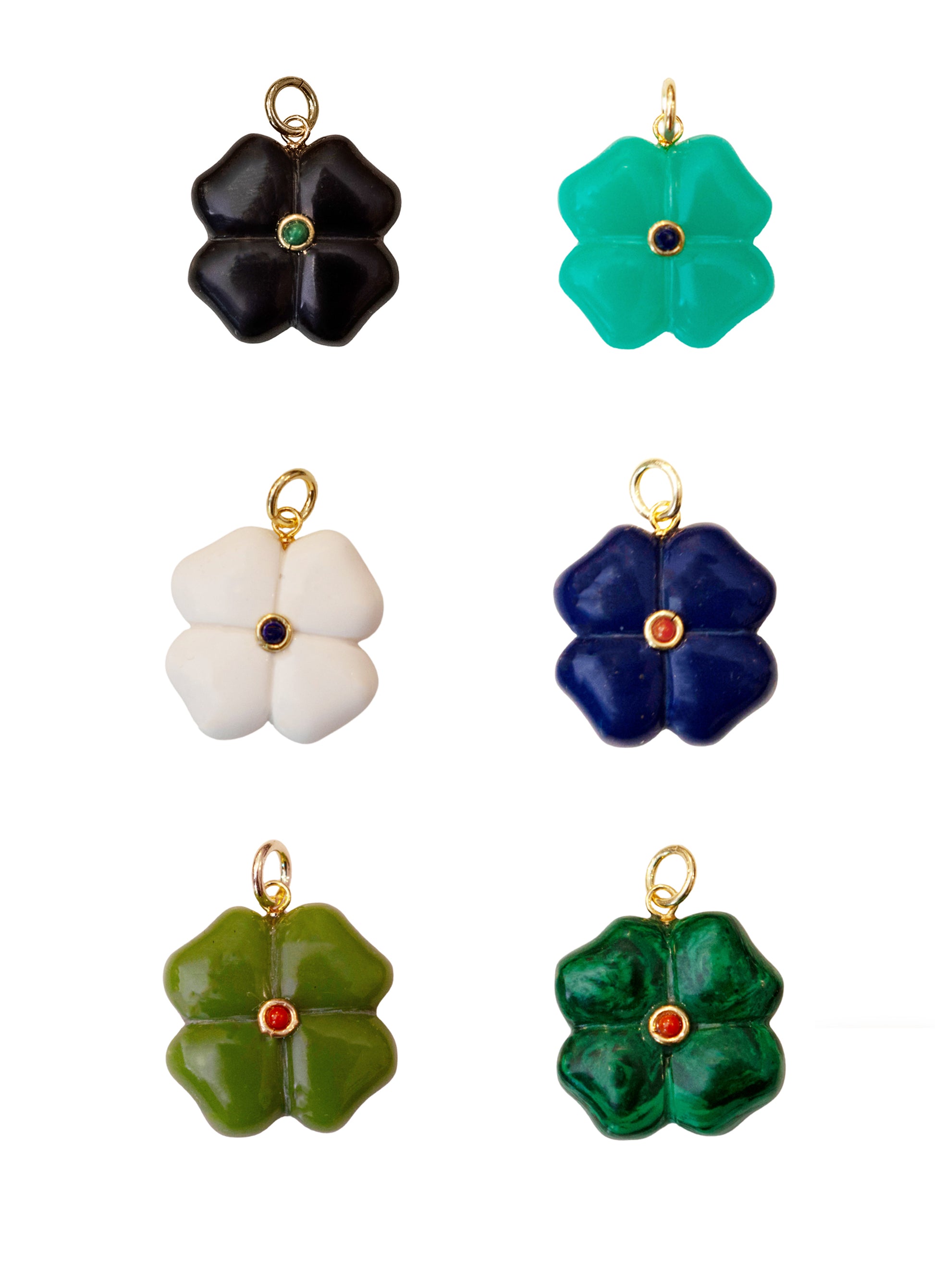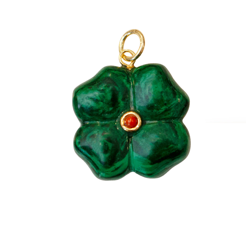 Ciondolo quadrifoglio con inserti in corallo naturale e malachite