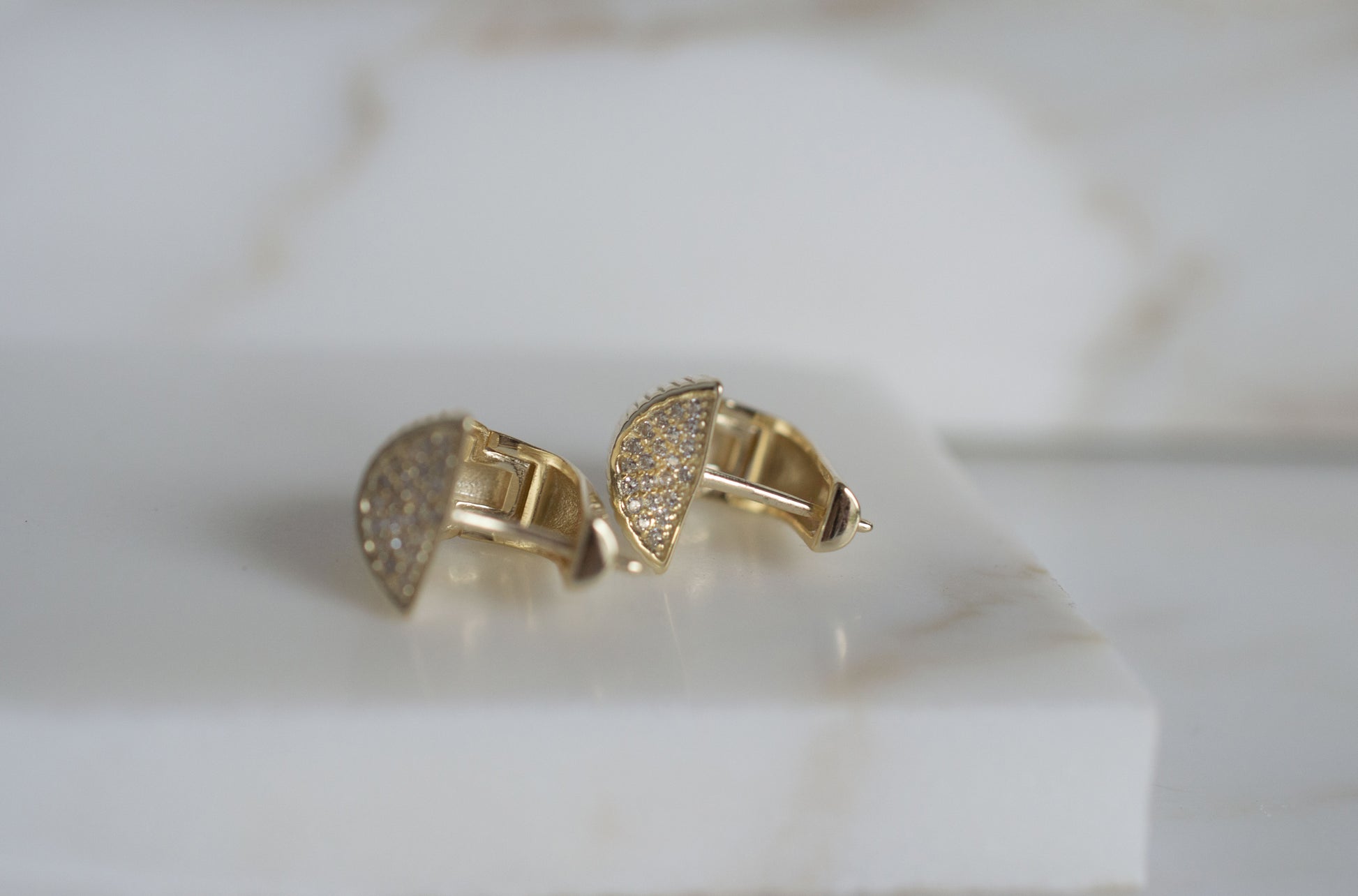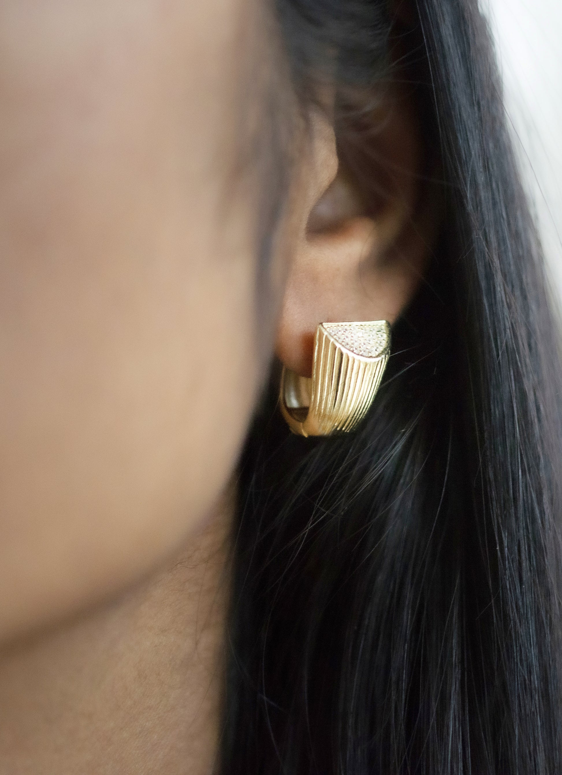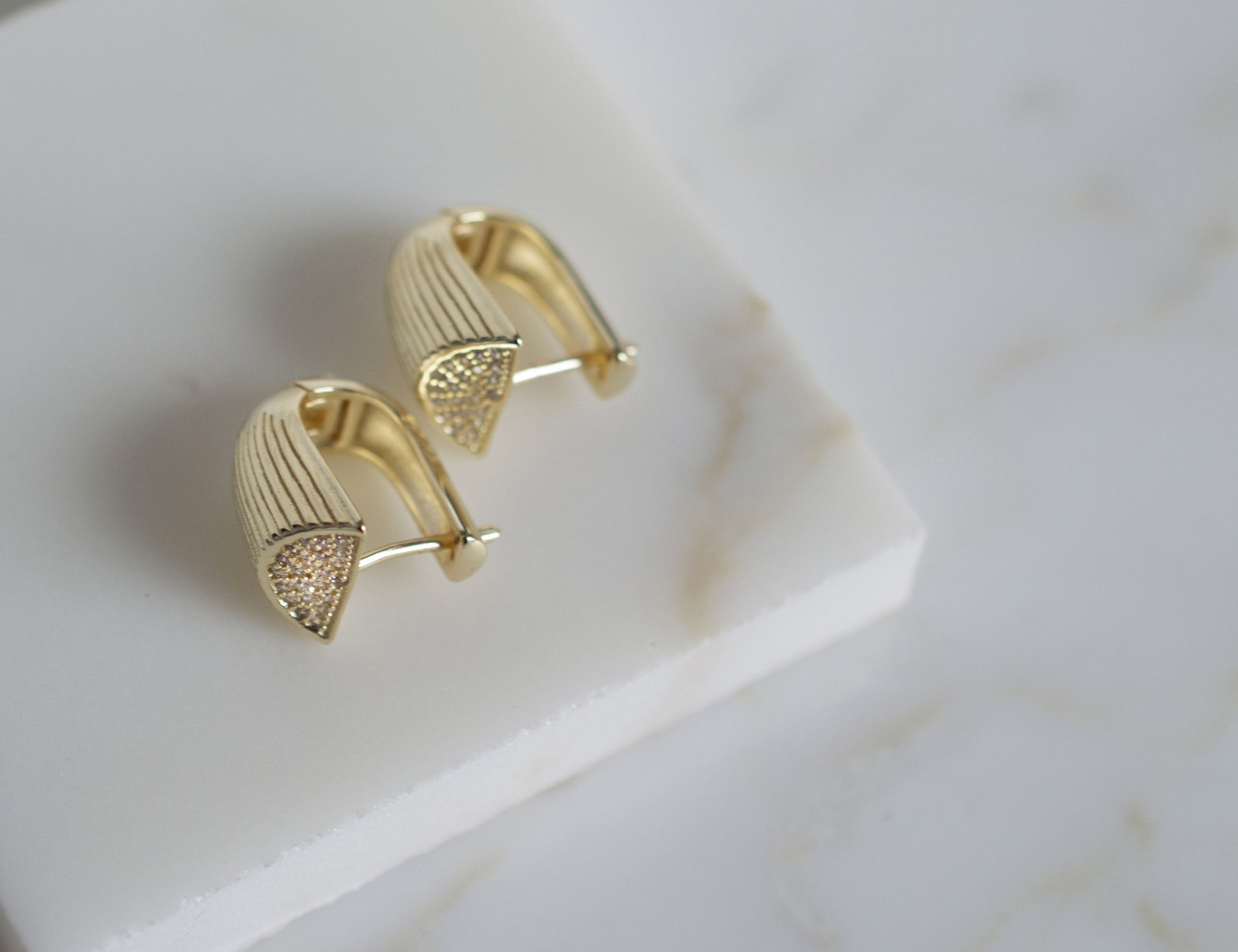Orecchini dal design Decò in argento 925 con doratura in oro 18 carati.