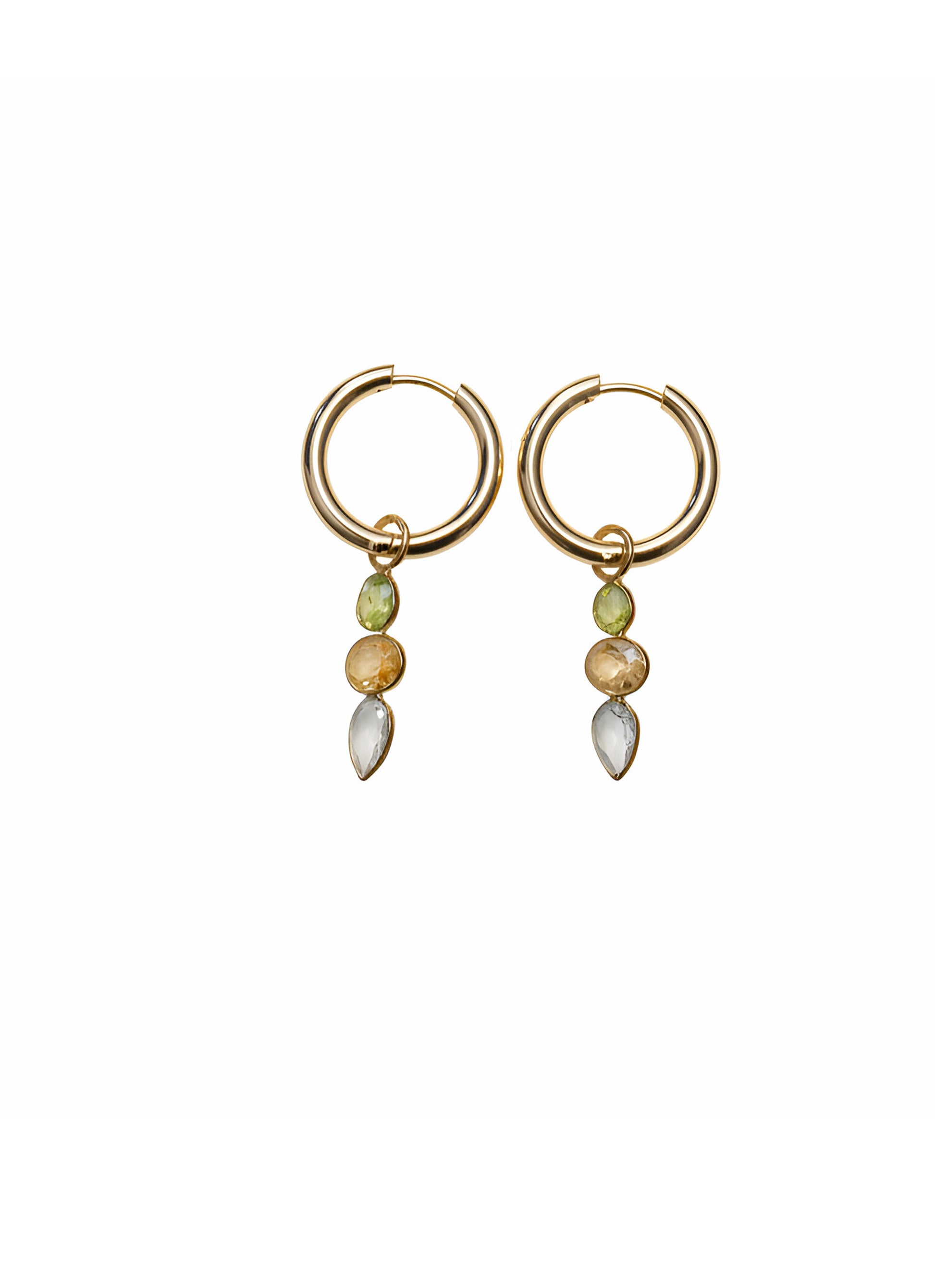 Ciondoli con peridoto, citrino e topazio swiss montati su orecchini in argento 925 con doratura in oro 18 carati.