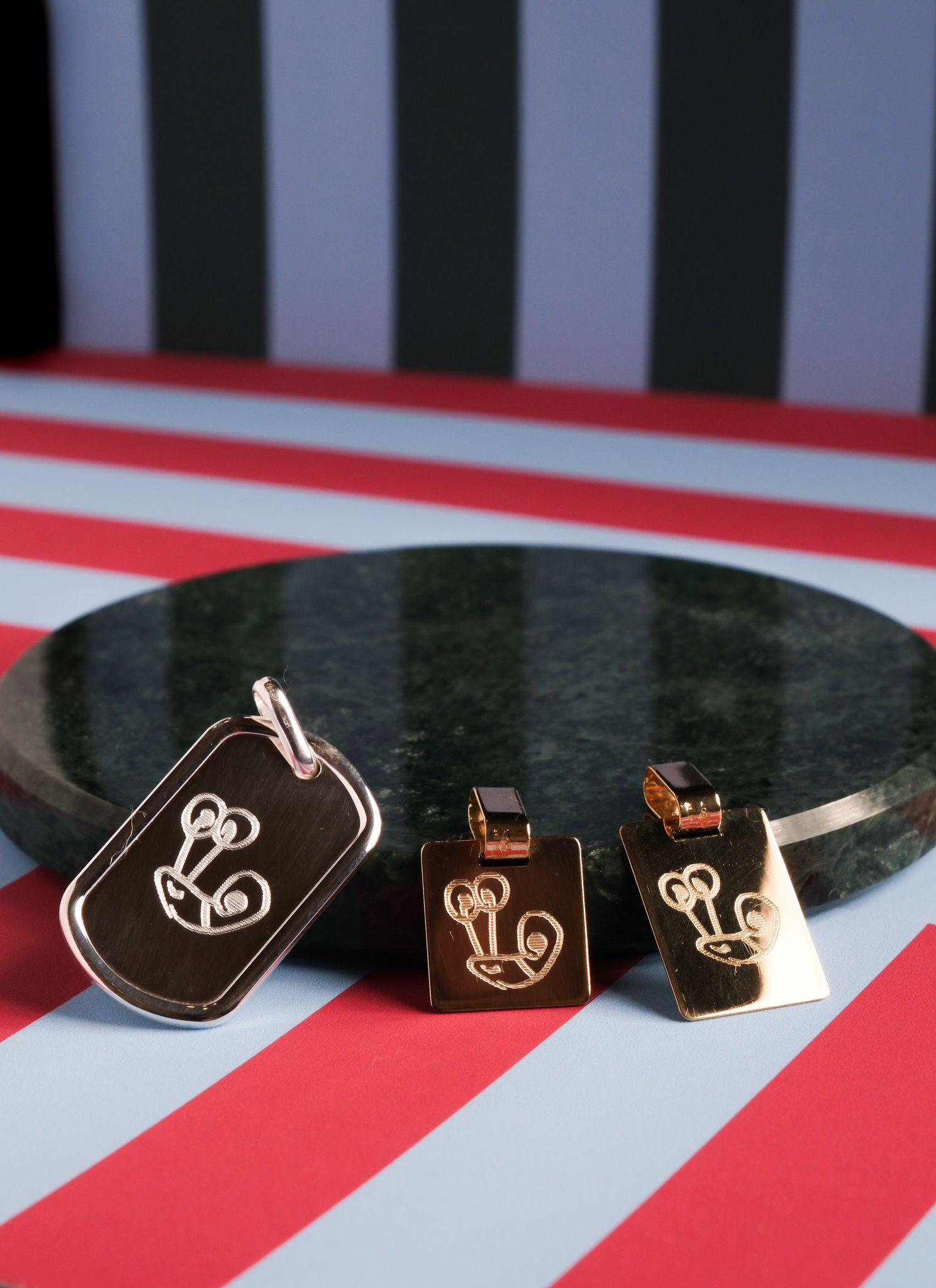 Puoi personalizzare la piastrina con un'incisione che rappresenti un disegno, una scrittura o una frase a mano di una persona importante per te.