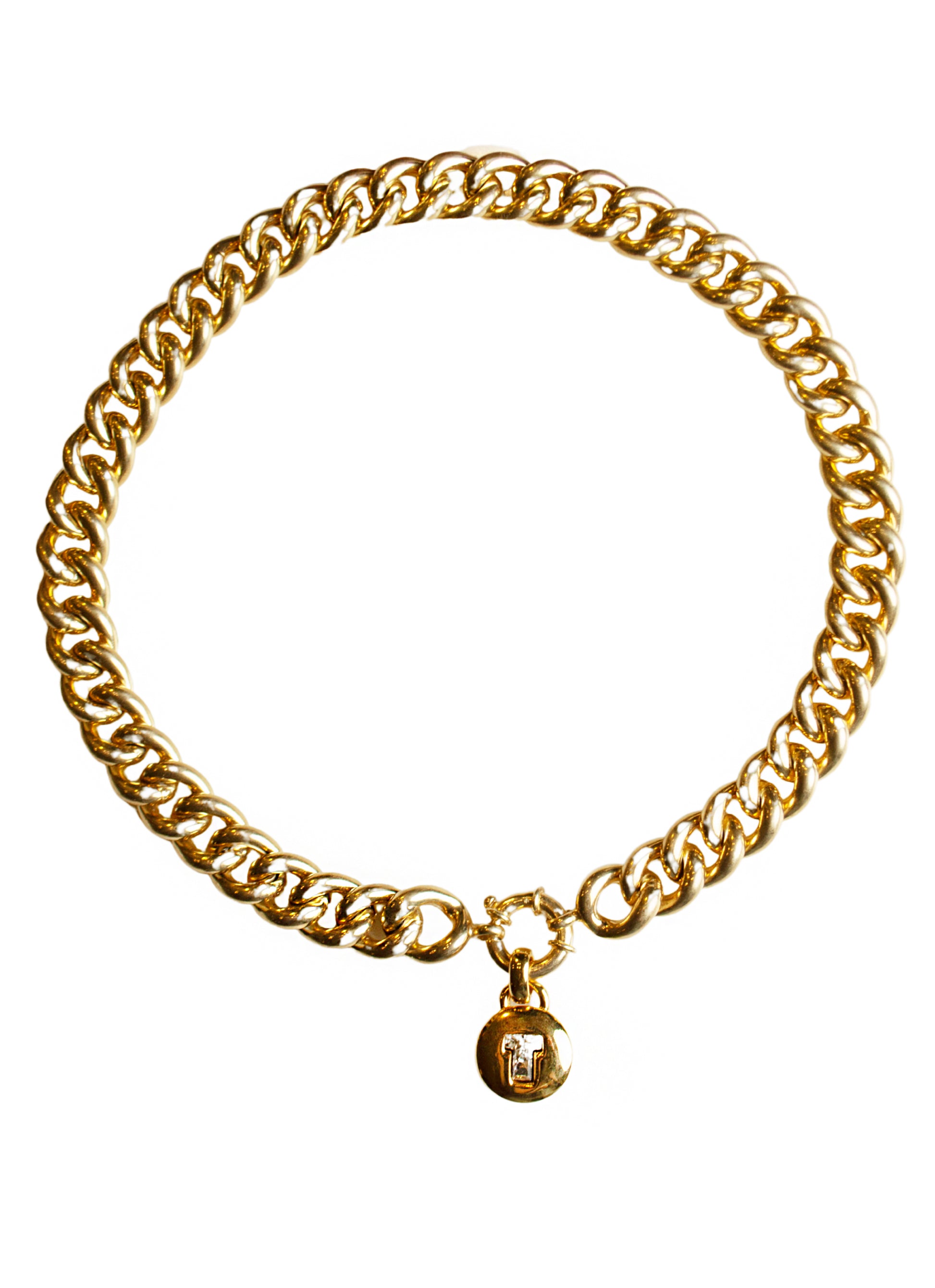 Catena realizzata in bronzo con doratura in 18 carati, lunghezza della catena 46 cm